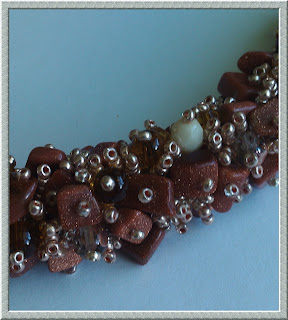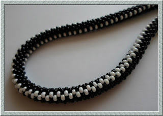 В работе использовала бисер ТОНО 11, черный матовый и золотой, бусины 6 и 4мм, плела на нитке Nymo.