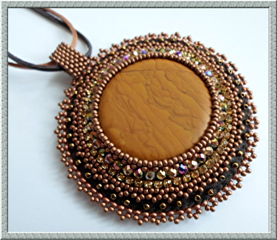 В работе использовала бисер ТОНО 11, черный матовый и золотой, бусины 6 и 4мм, плела на нитке Nymo.